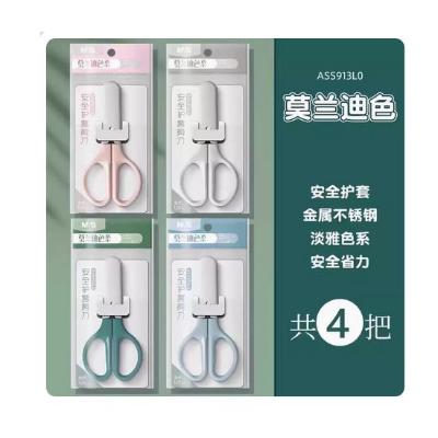 晨光儿童剪刀安全手工专用圆头便携式剪纸刀带保护套 【粉+蓝+米+绿】4把