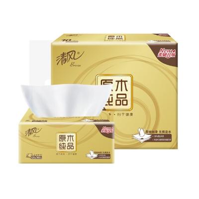 清风(APP)抽纸面巾纸 原木纯品金装系列 3层120抽软抽纸巾 10包/提