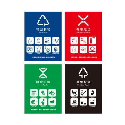 包装清单: | 壹居长宁 新国标通用款垃圾分类标示贴 不干胶自粘PVC防水防褪色贴纸 室内室外环保标识 15*20cm 4个/套 |