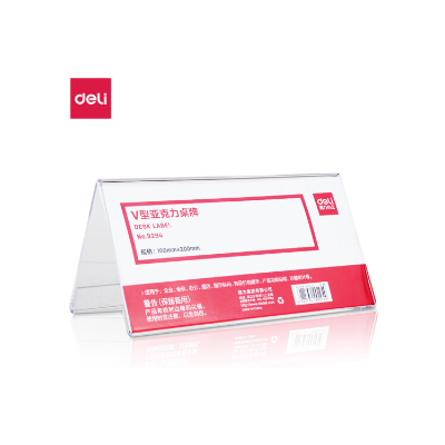 包装清单: | 得力(deli)9294 双面标牌 三角桌牌 亚克力V型桌牌会议牌桌签 200*100 *1 |