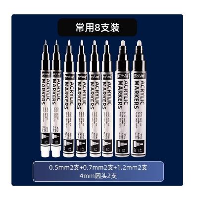 白色记号笔丙烯马克笔 常用8支装 0.5mm+0.7mm+1.2mm+4mm圆头(各2支)