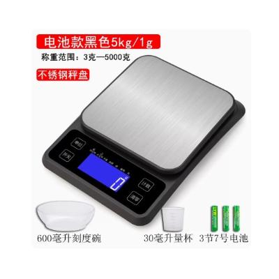 中盛 精准家用厨房电子秤 不锈钢电池款银色5kg/1g 送托盘+量杯