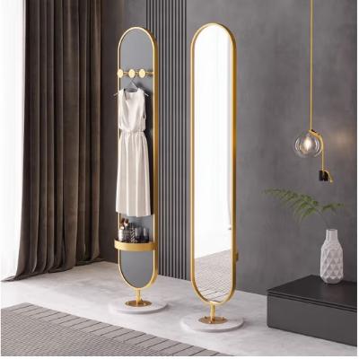 墨绩 镜子 全身镜 穿衣镜 带收纳 旋转试衣镜 大理石底座白+白色360度旋转带收纳