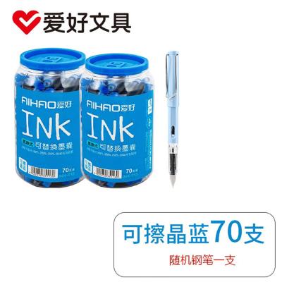 爱好(AIHAO) 可替换可擦钢笔墨囊 桶装 可擦晶蓝70支送随机钢笔ink013