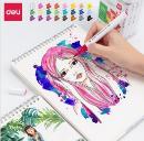 得力70809 24色细三角杆水性软头马克笔(24色/桶)