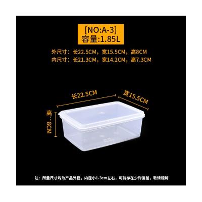 包装清单: | 保鲜盒透明塑料盒子长方形冰箱专用冷藏食品收纳盒商用带盖 A-3 长方形保鲜盒(约1.85L) *1 |