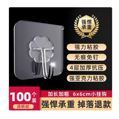 包装清单: | 挂钩强力粘胶免打孔贴墙无痕挂钩 强力背胶+不锈钢实心小挂钩【100个装】 *1 |