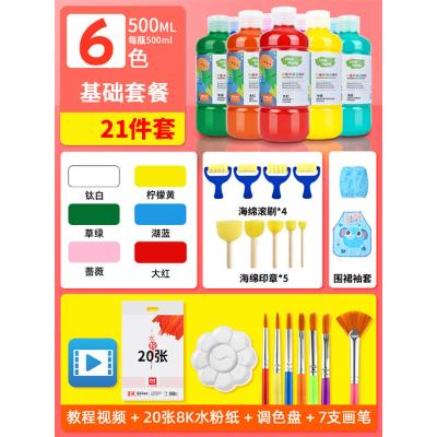 美邦祈富 水粉颜料儿童水粉画涂鸦无毒幼儿园可水洗水彩画画工具 小学生3岁手指画美术专用 6色/基础 轻松水洗送鸭嘴杆