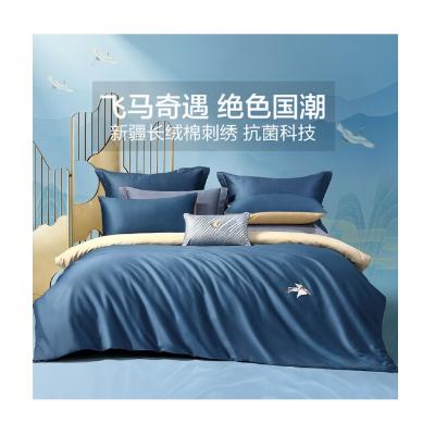 水星家纺 60S长绒棉 贡缎 床上四件套 双人 被罩被褥被单 1.8米床 绝色