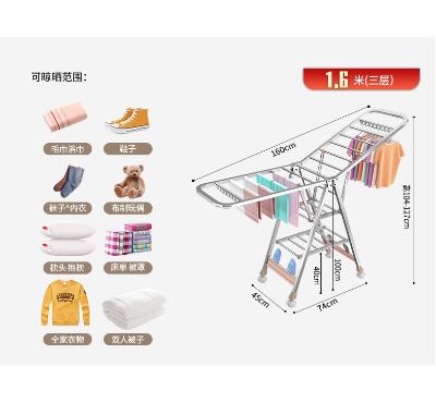 包装清单: | 妙立 不锈钢晾衣架落地折叠 1.6m 三层 |