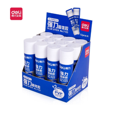 包装清单: | 得力(deli) 7123 强粘性PVP固体胶水 大容量胶体 无甲醛配方强力快干胶棒 36g 12支/盒 |