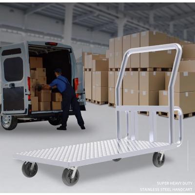 载卫士 不锈钢手推车304焊死扶手不锈钢 120*80cm配8寸重型刹车静音轮