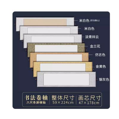画轴空白卷 六尺条幅59*224cm横轴 淡青祥云高温绫布-白色画心