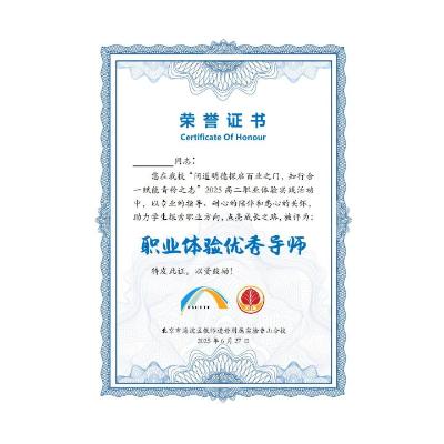 包装清单: | 职业体验活动总结会导师证书 竖版加厚A4 *1 |
