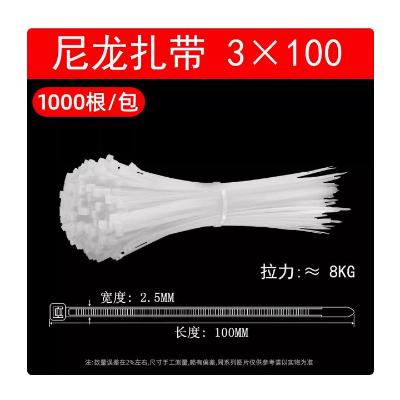 全新自锁式尼龙扎带PA66环保塑料扎带 白色3*100mm国标2.5宽 1000条/包
