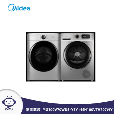 包装清单: | 美的(Midea) 洗烘套装 (MG100V70WD5-Y1Y +MH100VTH707WY) 10kg全自动洗衣机+10kg热泵烘干机 |
