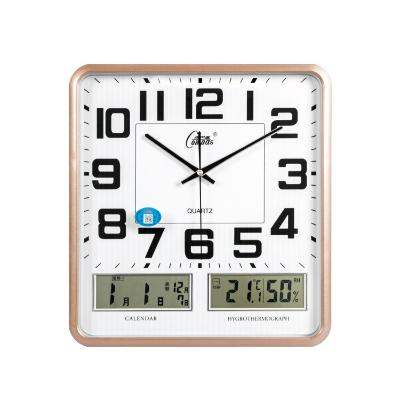 康巴丝(COMPAS) 2983 挂钟 16英寸 万年历温湿度计静音双日历双液显木纹色