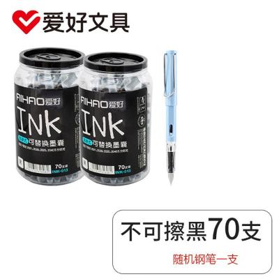 爱好(AIHAO) 签字笔可替换钢笔墨囊ink013 桶装 办公用品不可擦黑色70支+随机钢笔