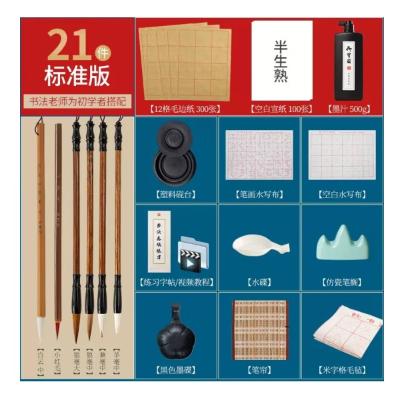 御宝阁 文房四宝毛笔套装 初学者入门书法笔墨纸砚毛毡砚台带盖字帖水写布笔架墨碟毛笔练字纸 标准21件套