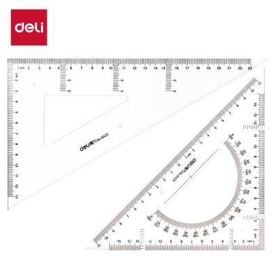 得力(deli)23cm三角尺 等腰直角三角尺+斜边三角尺 高透耐磨带量角器 2件套