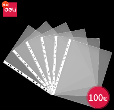 | 包装清单: | 得力(deli) 5712 11孔资料袋(透明)(100只/包) |