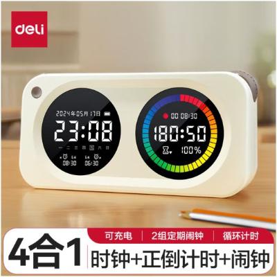 得力 LE888DS 学生双屏可视化计时器闹钟 白色