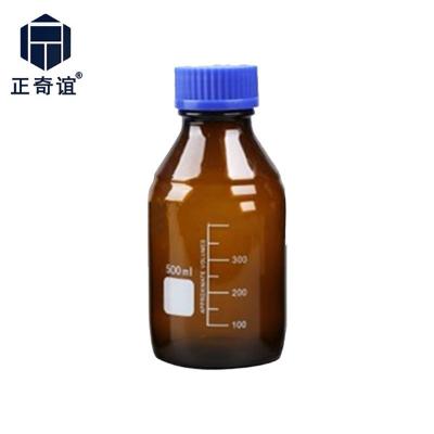 正奇谊 蓝盖试剂瓶透明棕色 丝口玻璃瓶 螺纹口带刻度 棕色500ml