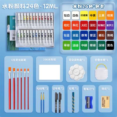 美邦祈富 水粉颜料儿童无毒幼儿园可水洗 初学者画画工具全套 24色12ml 16件套 轻松水洗