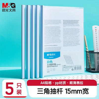 包装清单: | 晨光(M&G) 5只装 A4/15mm白色抽杆夹 办公报告夹拉杆夹 考试收纳 资料整理收纳文件夹 ADM929QA |