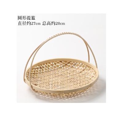 手工竹编提篮 家用茶点盘 水果篮子糕点托盘 竹编篮 圆形提篮大号直径27cm 高20cm