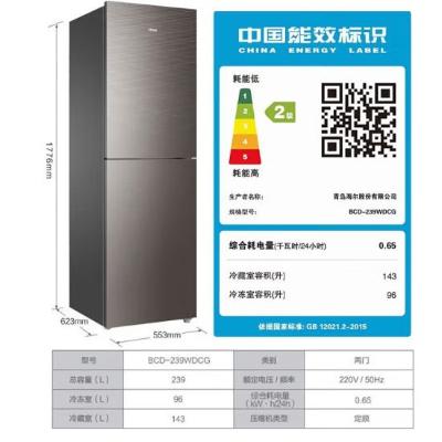 海尔(Haier)冰箱小型双门家用迷你小冰箱超薄风冷无霜二门家电节能电冰箱 BCD-239WDCG