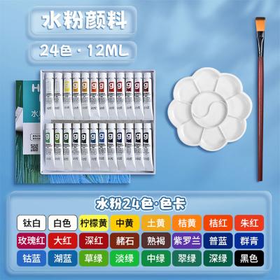美邦祈富 水粉颜料儿童无毒水彩画套装 水粉24色12ml 2件 轻松水洗