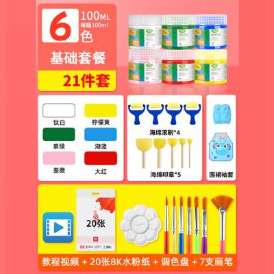 美邦祈富 水粉颜料儿童无毒水彩画套装手指画初学者绘画幼儿涂鸦 6色/基础 100ml 轻松水洗