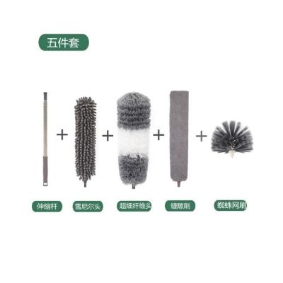 世明 除尘掸细纤维加长鸡毛掸子 杆子+细纤维灰白头+雪尼尔头+缝隙刷+蜘蛛网刷+纸 5件套