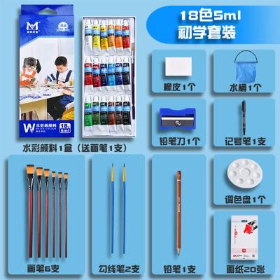 美邦祈富 水彩水粉颜料套装初学者小盒便捷绘画管状颜料可水洗调色盘工具 水彩18色5ml 初学套装