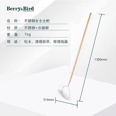 包装清单: | Berry&Bird 园艺森林翻土耙子松土不锈钢齿钉耙草坪通气户外工具 不锈钢女士土耙 |
