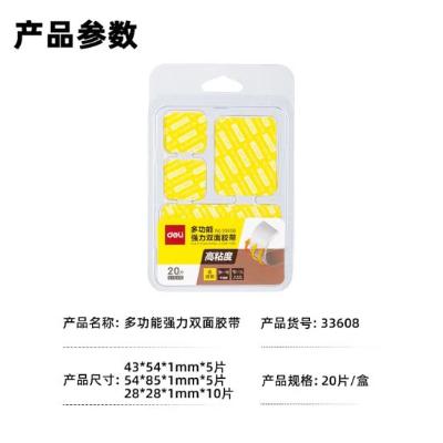 包装清单: | 得力 33608 双面透明胶带 混装 透明 20片/包 |