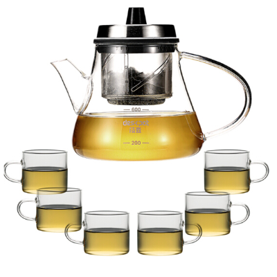 商品名称:半个茶人 顶壶旋转升降泡茶壶加厚玻璃办公室家用可调浓淡茶水分离飘逸杯 600ml D18+品茗杯*6 |