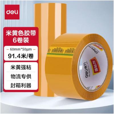得力(deli)高品质米黄色封箱胶带打包宽胶带 60mm*100y*50μm(91.4m/卷) 6卷装 30359