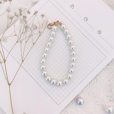珍珠玻璃仿珍珠饰品配件DIY手机链毛球钥匙扣挂件钩针玩偶挂件纯白+金扣