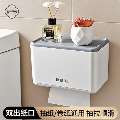 葆氏 卫生间抽纸盒壁挂式纸巾盒 免打孔 灰白纸巾盒
