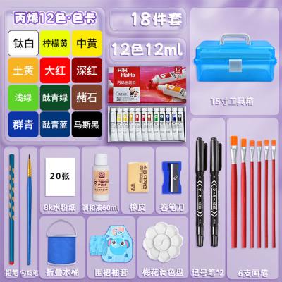 包装清单: | 美邦祈富 丙烯颜料小盒装套装挤压式无毒防水防晒彩绘涂鸦绘画画画不掉色材料 12色12ml 工具箱套装 |