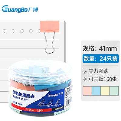 包装清单: | 广博(GuangBo) 24只41mm彩色长尾夹票夹2#金属燕尾夹票据夹子 W18007 |