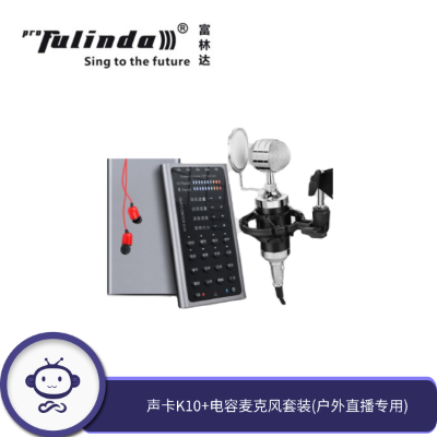 包装清单: | 富林达(proFulinda) 声卡套装 电容麦克风主播录音话筒全套 K10+黑色小奶瓶套装音质升级(户外直播专用) |