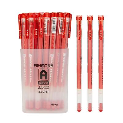 爱好(AIHAO) 巨能写中性笔 0.5mm 红色速干直液笔走珠笔全针管简约碳素签字笔考试专用笔 47930