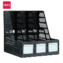 得力(deli) 9833 三栏带标签稳固文件栏/文件筐/资料框 黑色