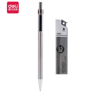 得力(deli) S713 银色金属笔杆 0.5mm 自动铅笔套装(活动铅笔+铅芯)