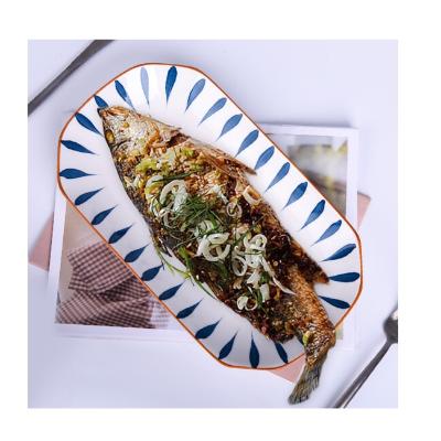 传旗 釉下彩日式陶瓷鱼盘子 12英寸陶瓷盘子 护边烤鱼盘子大号 兰草