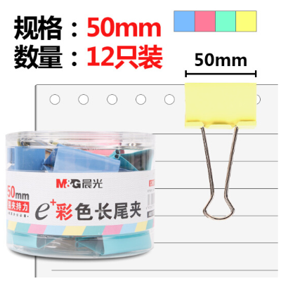 包装清单: | 晨光(M&G) ABS92738 彩色长尾夹 50mm 12枚/筒 |