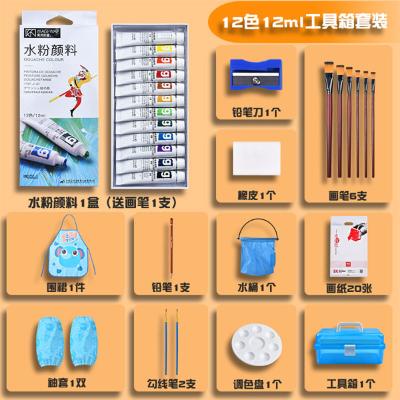 美邦祈富 水彩水粉颜料套装初学者小盒便捷绘画管状颜料可水洗调色盘工具 水粉12色12ml 工具箱套装